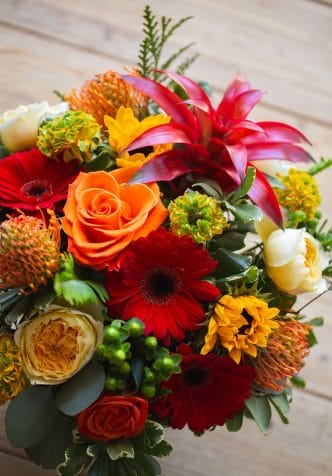 Occasionally, substitutions may be necessary to create your bouquet due to the availability of certain flowers in various parts of the country. Care is taken to maintain the style, theme and color scheme of the arrangement, using flowers of equal value. Additionally, the substitution of vases or pots may be necessary due to increased demand, especially during major holidays. In single-flower arrangements, such as an all rose bouquet, or orchids, we will make every attempt to match the flower type, but may substitute with another color.